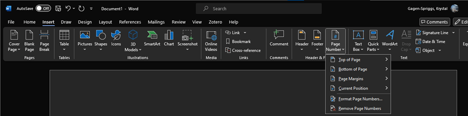 Page Numbers in Microsoft Word