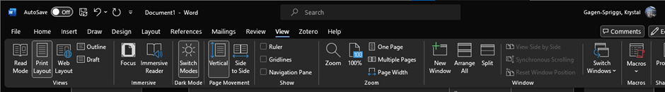 Note: If you’ve been using the ‘Find’ function (control F or command F), the Navigation Pane may open to those results. To view headings, simply click on ‘Headings’ tab in the pane.