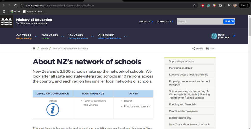 Ministry of Education. (2024, February 20). About NZ’s network of schools. Education in New Zealand. https://www.education.govt.nz/school/new-zealands-network-of-schools/about/